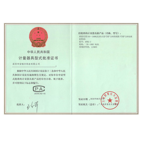 APEG-J (0~100)%LEL CPA計量器具形式批準證書