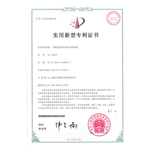 一種抗電流沖擊的氣體探測器專利證書